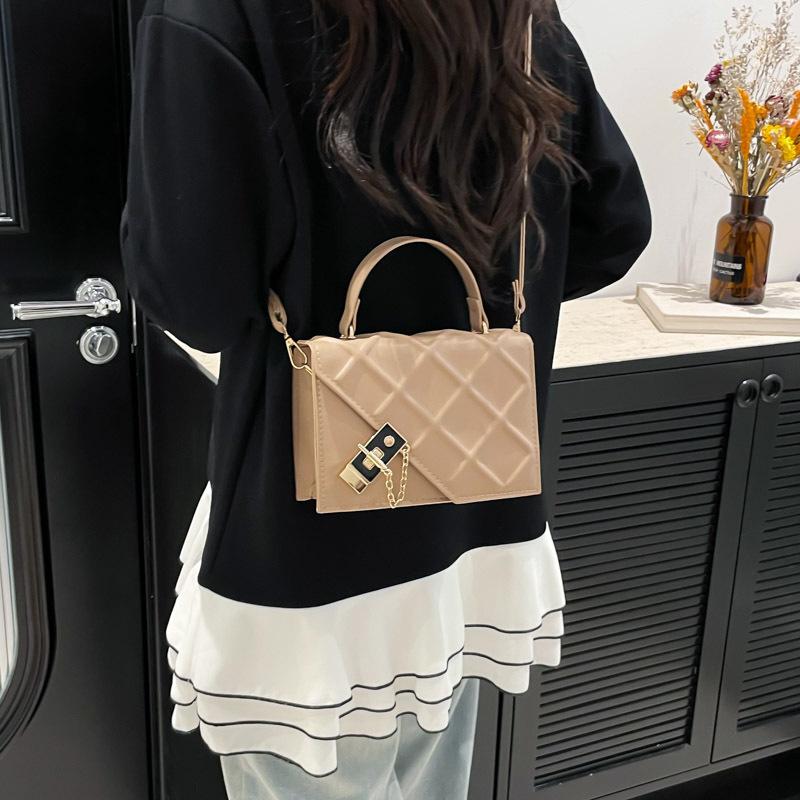 2025 New Portable Messenger Texture Indentation Rhombus Trend Foreign Style Solid Color Shoulder Small Square Bag Women's Bag