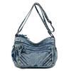 Women's Retro Washed Denim Multi-Pocket Crossbody and Backpack - Casual Niche Design