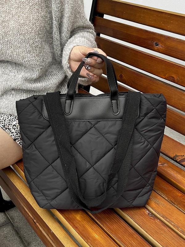 2025 Trendy Argyle Cotton-Padded Women's Shoulder & Crossbody Bag - Versatile, Solid Color Tote