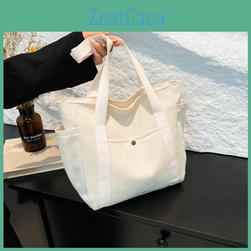 Stylish and Chic Design: The classic canvas tote bag comes in elegant colors (white and black) that fit seamlessly into any wardrobe, ensuring you look fashionable while on the go.