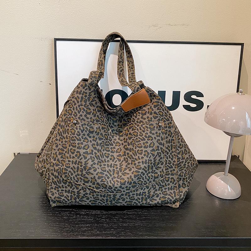 European & American Retro Leopard Print Shoulder Bag - Large Capacity, Stylish Mommy Tote