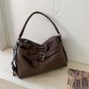 Retro Women's Large-Capacity Soft PU Tote with Leather Buckle - Single Shoulder & Crossbody Bag