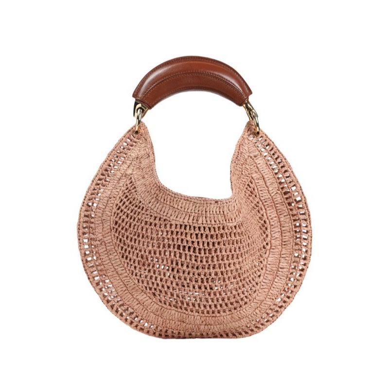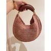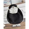 Women's Crescent Straw-Woven PU Leather Handbag - Fashionable Commuter Underarm Bag