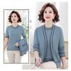 Spring Autumn Women's Knit Top Two-Piece Set Color-Block Knit Cardigan Knit Short-Sleeve T-Shirt Two-Piece Set