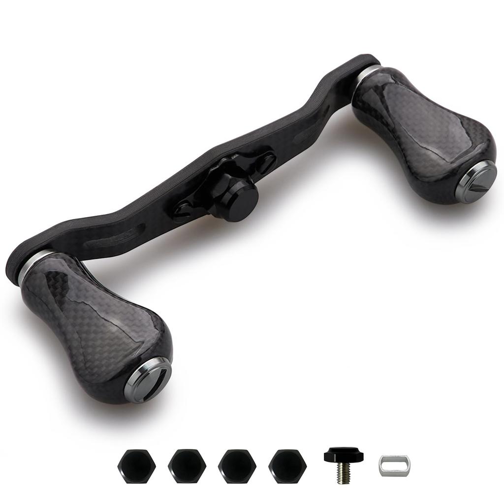 [Features] 1.5K carbon cloth handle and knob, light and strong, even lighter. [Size] Handle shaft distance 85mm/95mm, knob diameter 20mm/21mm. [85mm total weight] 23g/24g. [95mm total weight] 25g. [Material] 1.5K carbon cloth. [Reel handle included] Two 4x7mm center nuts, two 5x8mm center nuts, and one conversion sleeve. [Compatible models] Compatible with DAIWA, SHIMANO, and ABU GARCIA baitcasting reels with 4x7mm and 5x8mm mounting points.