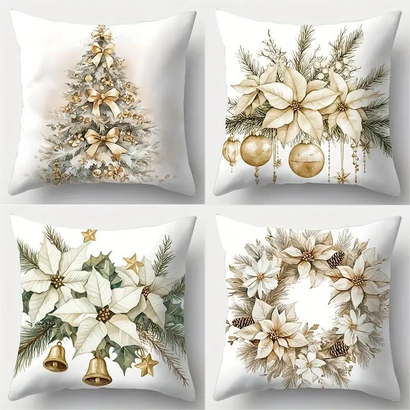 1pc White Golden Christmas Cushion Cover Wreath Pine Durable Cover 2025 New for Home Ornament Xmas New Year Christmas Decoration