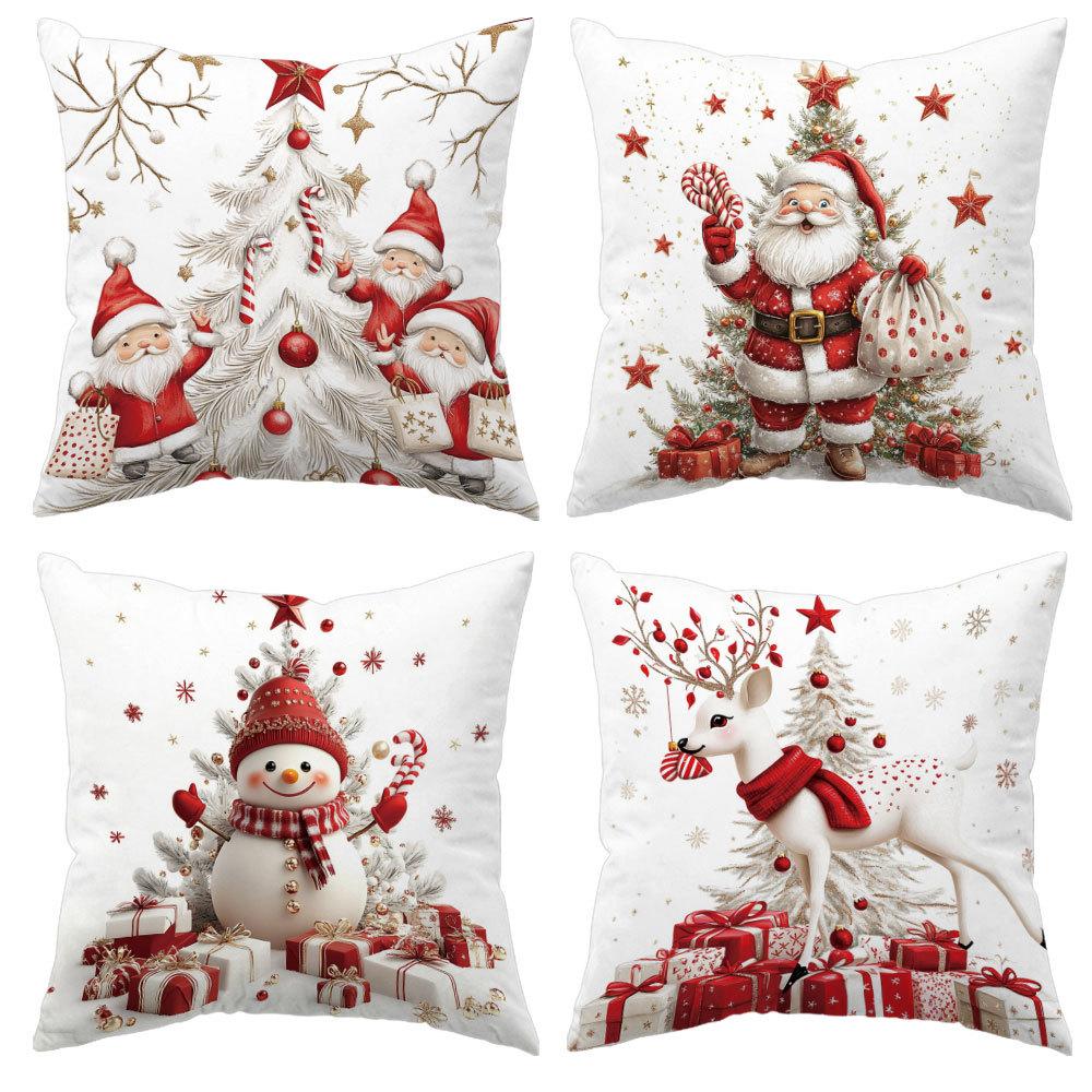 1pc Red White Christmas Cushion Cover Snowman Deer Santa Claus Durable Cover 2025 New for Home Ornament Xmas New Year Decoration