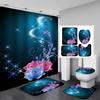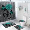 Romantic Rose Shower Curtain Polyester Waterproof Fashion Flowers Floor Mat Toilet Set Bath Accessories Mildew Proof