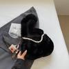 Korean Style Plush Shoulder Bag with Pearl Accents - Cute Autumn/Winter Crossbody