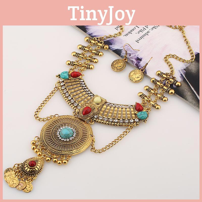 Style Ethnic Simulation Gemstone Decoration Women Necklace And Set Earring