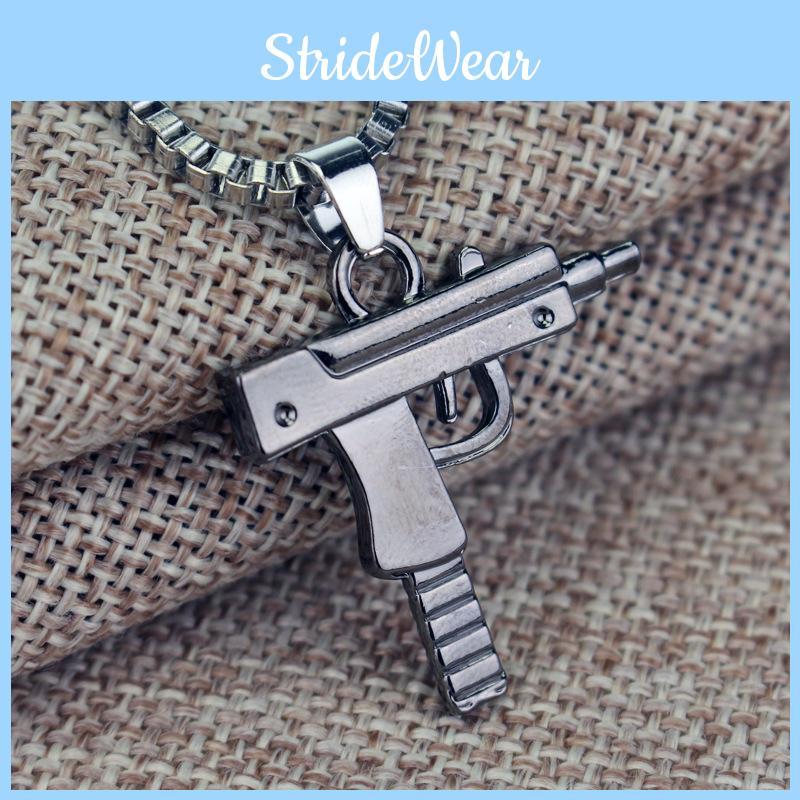 Gun Submachine Uzi Alloy Pendant Trendy Chain Necklace With Design Geometric