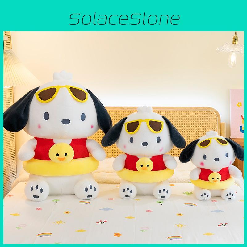 This plush dog pillow features a charming Pacha dog design with a swim ring, crafted from soft short-pile plush and filled with durable PP cotton. Available in three sizes45cm, 60cm, and 85cmeach provides plush comfort and visual appeal. Ideal for home decor, cuddling, or as a gift, it offers a cozy touch to any space. Wipe clean with a damp cloth to maintain its softness.