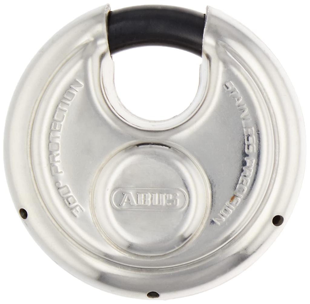 A classic disc-shaped padlock with a traditional design that is difficult to break.