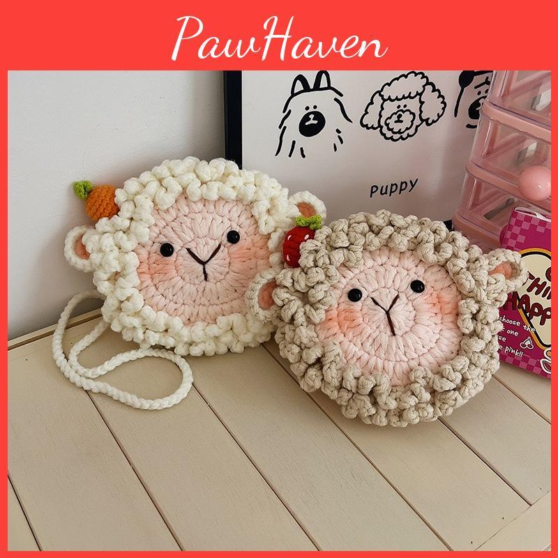 Cute Sheep Cartoon Woven Crossbody Bag For Childrens And Girls Daily Wear
