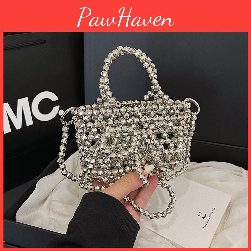 Bead Handbag Transparent With Bow Design And Top Opening For Women Daily Use
