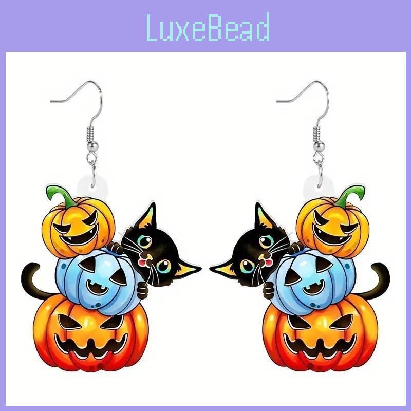 Halloween Themed Cat Pumpkin Skull And Dog Pattern Women Acrylic Earrings
