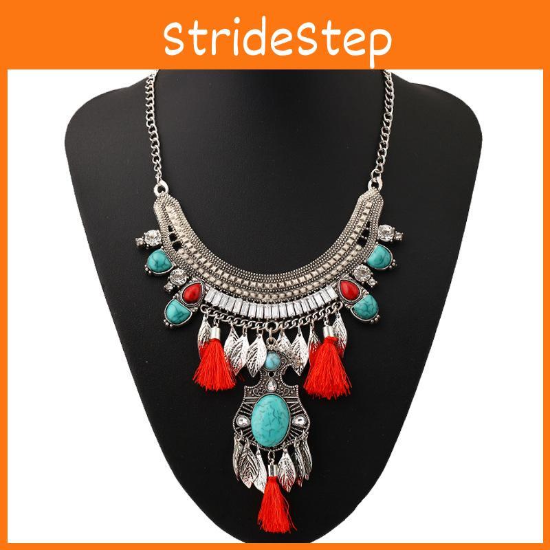 This vintage-style long tassel necklace features a detailed leaf-shaped pendant adorned with gemstone accents, crafted from durable alloy. with multi-layer design for a layered look. Ideal for enhancing bohemian or artistic outfits during spring seasons. Wipe clean with a soft cloth to maintain its shine.