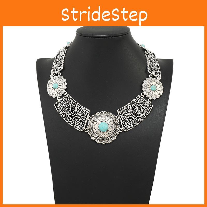 Simulation Ethnic Style Gemstone Decoration Hollow Design Women Metal Necklace