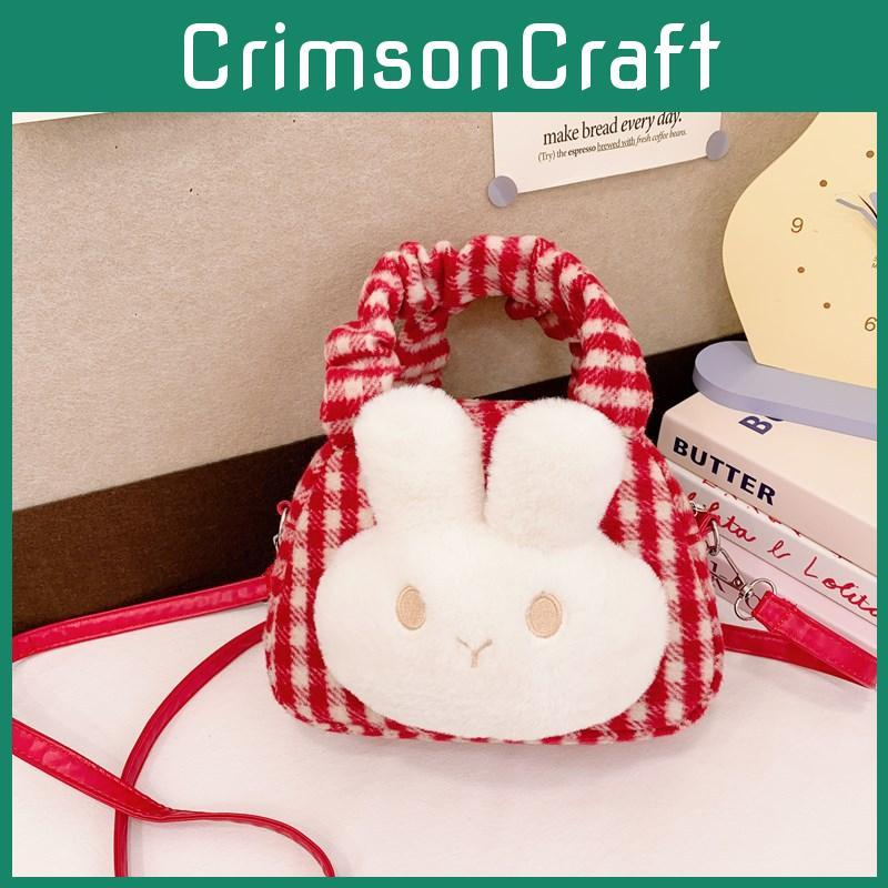 Cozy And Playful Plush Rabbit Shoulder Bag For Children With Trendy Checkered Design For Use Daily