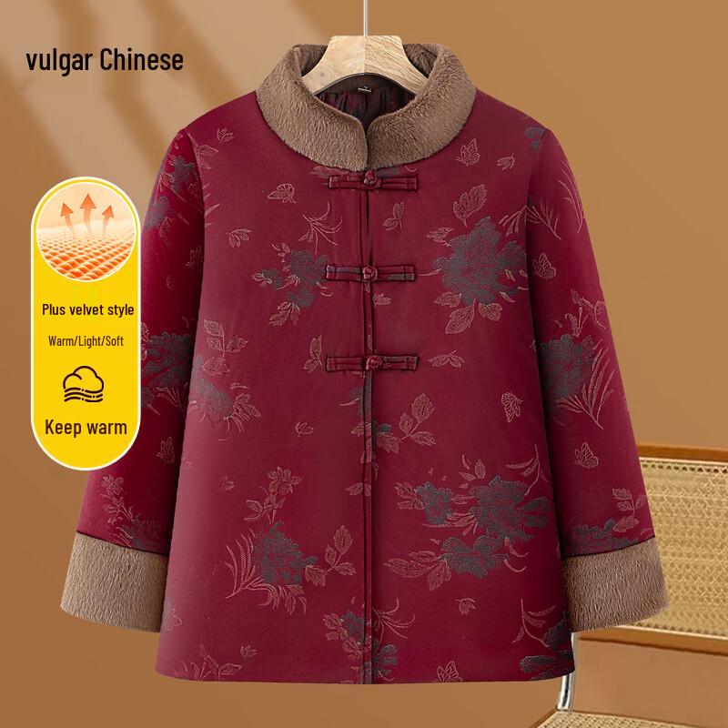 Elderly Women's Plus Size Padded Stand Collar Jacket