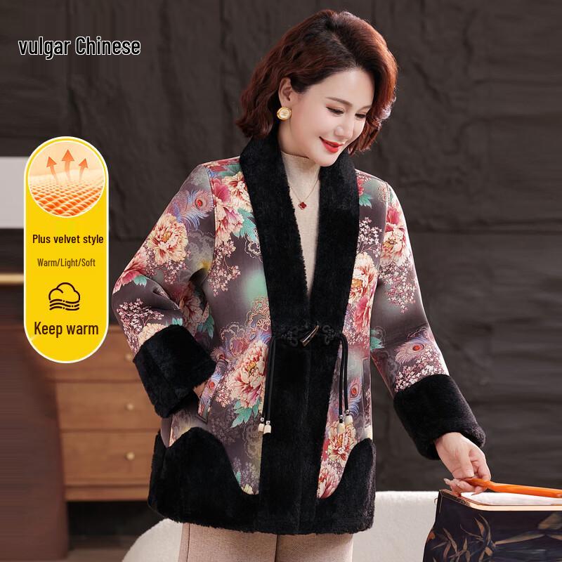 Ronghua Mama 2025 Winter Thickened Fleece-Lined Padded Coat for Senior Women