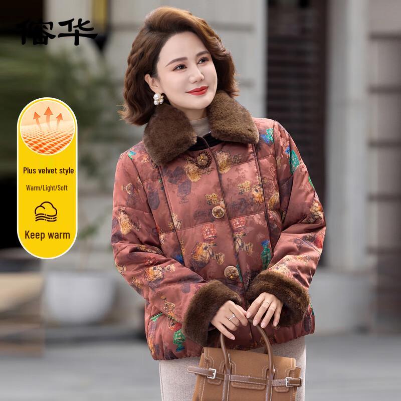 Ronghua Mom's New Chinese Style Floral Winter Cotton Jacket for Women