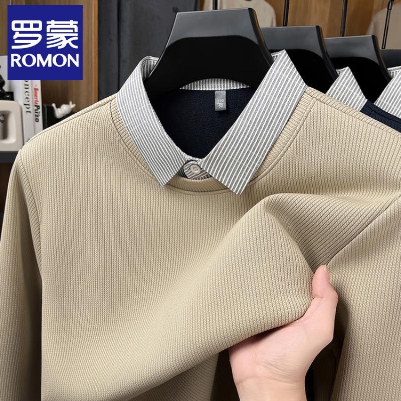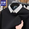 Luomeng Men's Faux 2-Piece Shirt Collar Knit Sweater