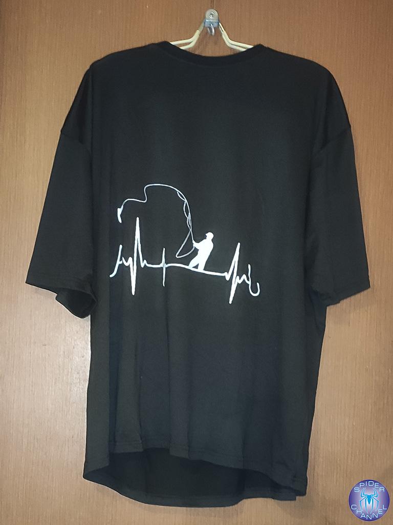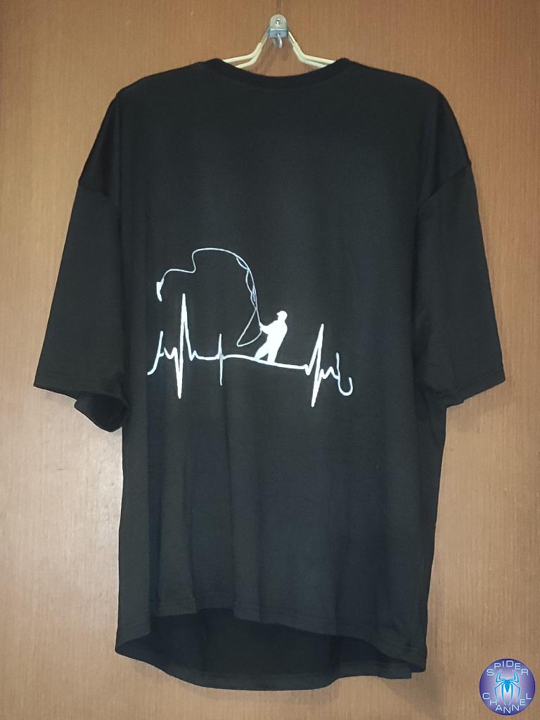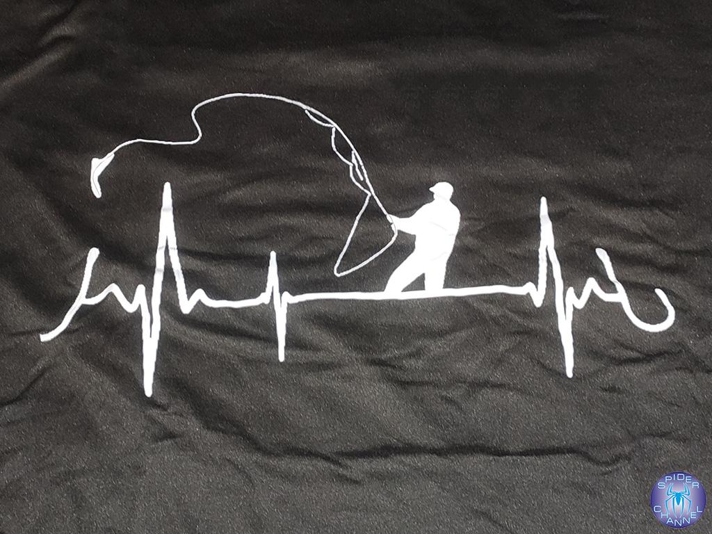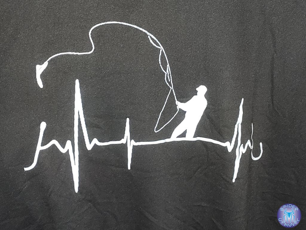 Black T-Shirt With Fishing Heartbeat Design For Outdoor Enthusiasts