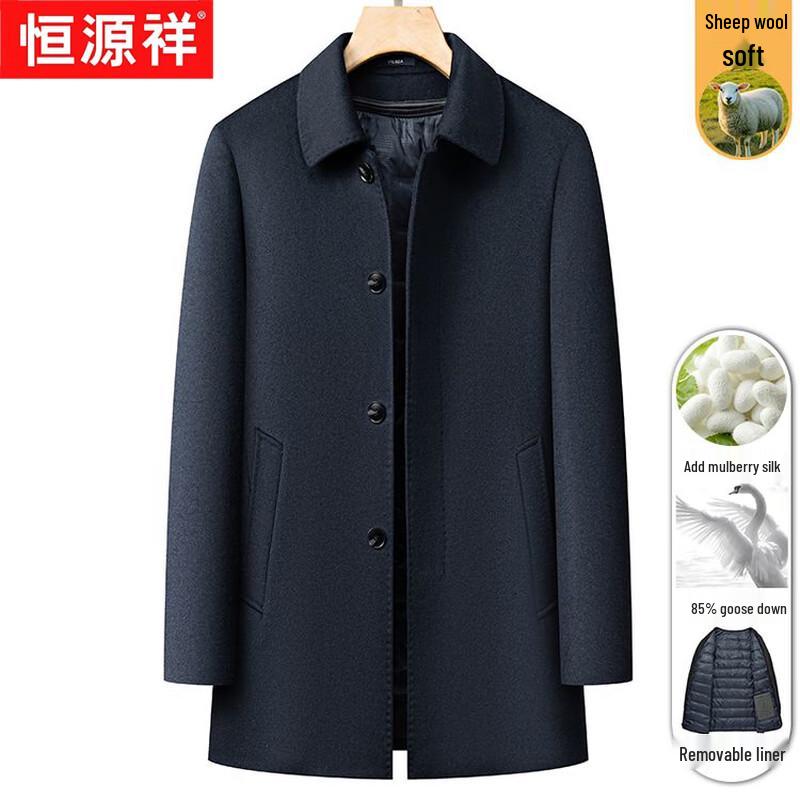 Hengyuanxiang Men's Wool & Silk Blend Winter Overcoat