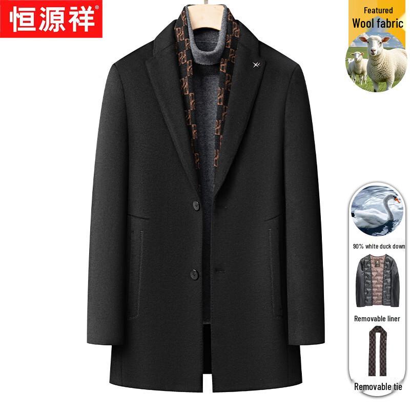 Hengyuanxiang Men's Double-Faced Wool Coat with Removable Liner