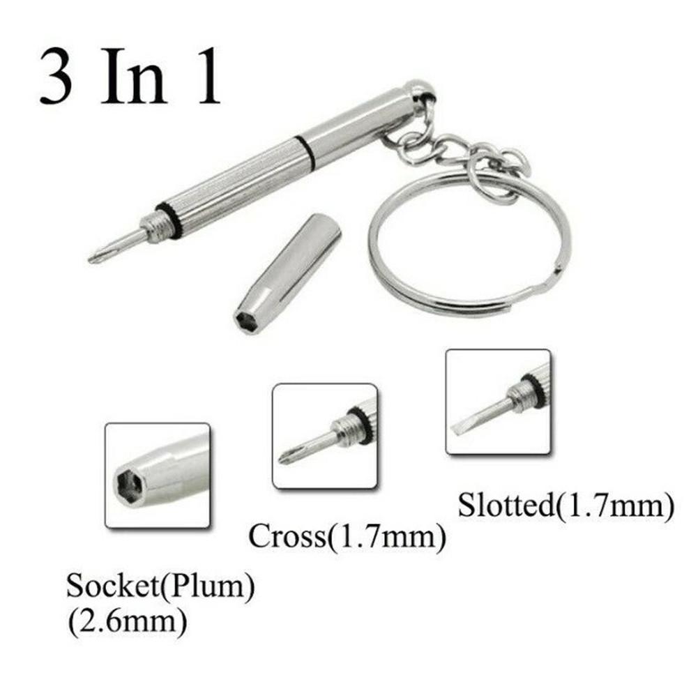 2Pcs Multifunctional Mini Screwdriver 3in1 Screw Driver Glasses Phone Watch Screw Repair Tool Keyring Key Chain