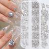 180pcs AB Flatback Glass Nail Art Rhinestones Multi-shape Mixed Diamond Gems Blue Purple Crystal Stones For DIY Nail Decoration