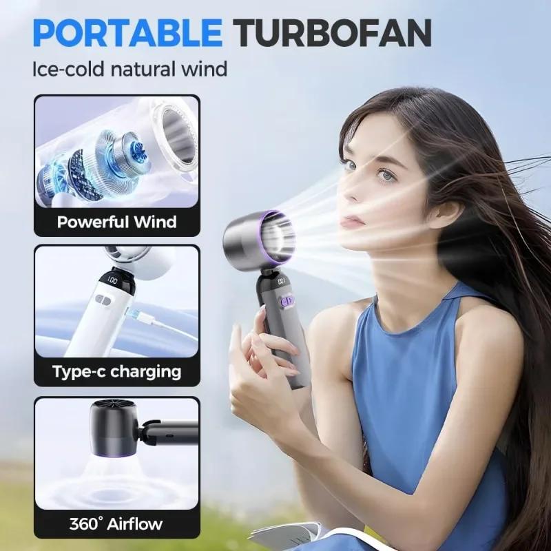 5000AH Hand Fan Mini Turbo Fans Mini Ice Cooling Fan Hand Folding High-speed Turbine Fan Cooling Ice Fan Portable Handheld Fans