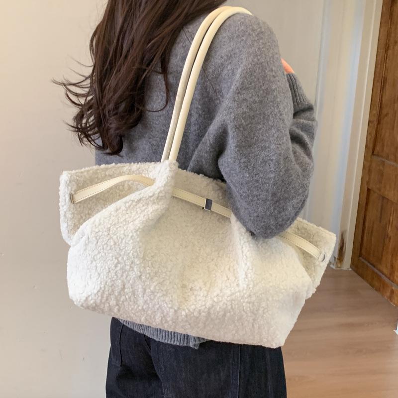 Winter Korean Version of Lamb Wool Handbag Large-capacity Plush Bag Women's Foreign Style Fashion Shoulder Underarm Bag Tote Bag