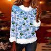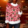 Women's Fashionable Christmas Printed Round Neck Long Sleeved Casual Pullover T-shirt Top