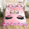 Cartoon Unicorn Duvet Cover Set Smile Eyelash King Bedding Set For Girls Woman Microfiber Mermaid Scale Floral Comforter Cover
