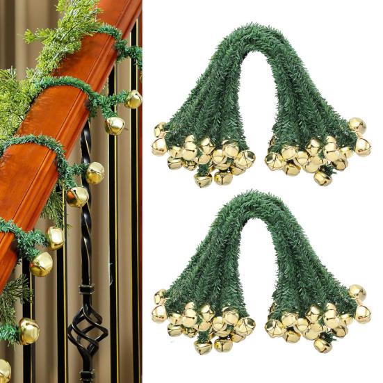 Christmas Garland Ties with Bells Decorative Rope Straps for Wreaths Railings Stairs Flexible Faux Pine Needle Twist Ties Xmas Holiday Decor