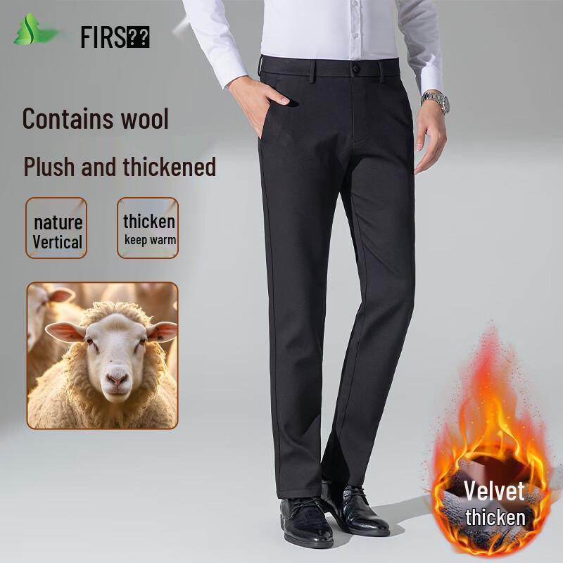FIRS Men's Winter Wool Blend Straight-Leg Business Casual Pants