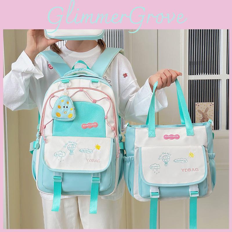 Cartoon Embroidery Letter Student Lightweigh Backpack Three Piece For School Use