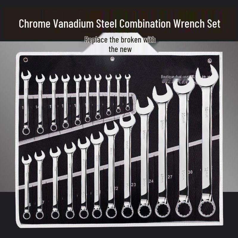 10-Piece Double-Ended Open-End Wrench Tool Set - Chrome Vanadium Steel, Ideal for Automotive Repair
