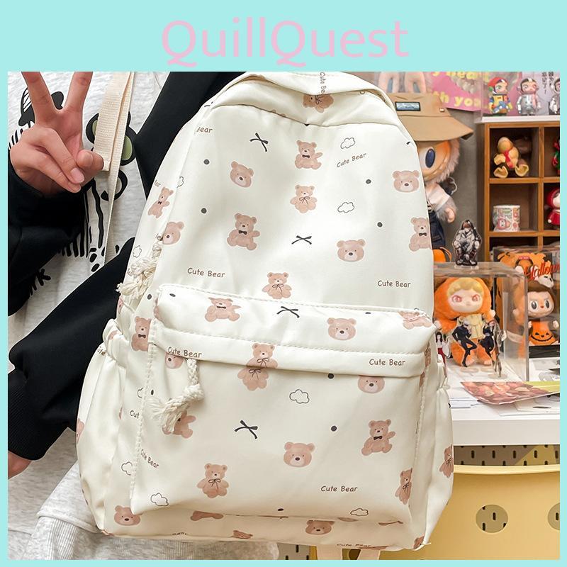Simple Bow Butterfly And Cartoon Bear Pattern Student Backpack For Teens