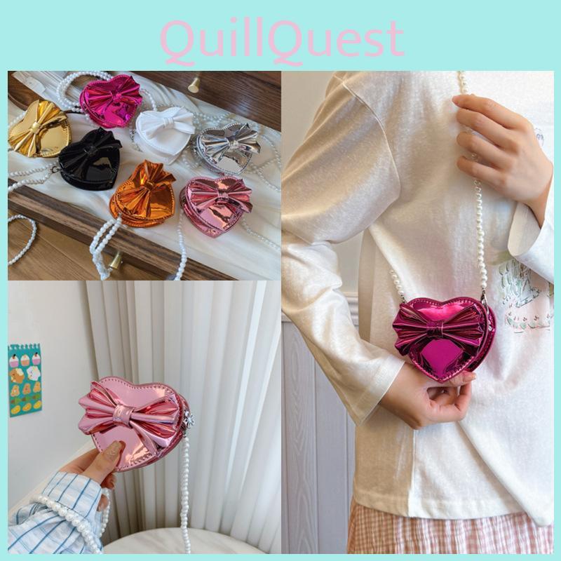 Shaped Mini Heart Bow Pearl Chain Bag With Zipper Closure For Daily Casual Use