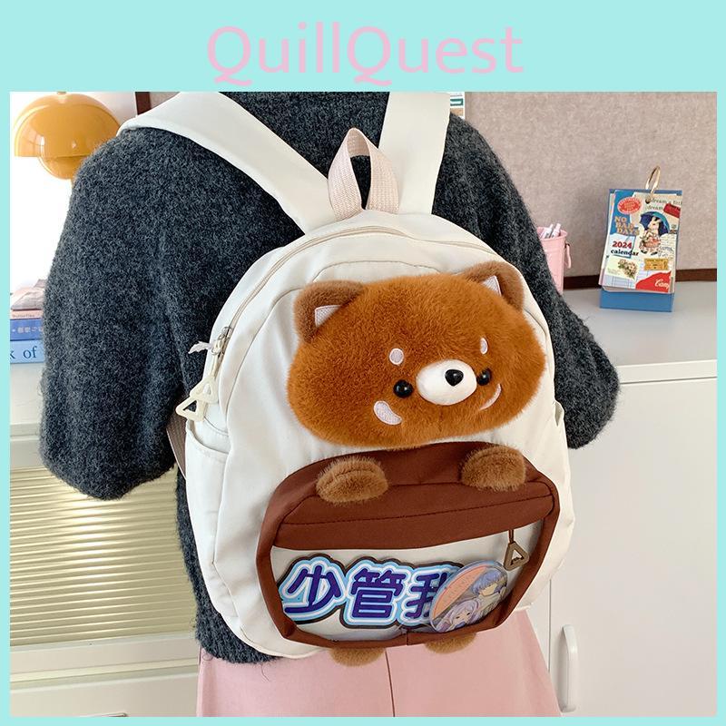 This plush cartoon raccoon backpack features a soft, durable fabric construction with a capacity of under 20 liters, designed to comfortably hold a 10-inch laptop. Its eye-catching anime cartoon pattern and stitching details add a fresh, sweet style.
