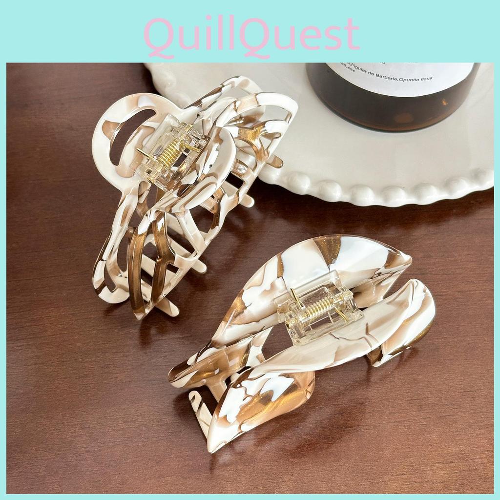 Stylish Vintage Design: Elevate your look with these beautifully crafted hair claw clips that feature a vintage design in trendy milk coffee hues, perfect for any outfit.