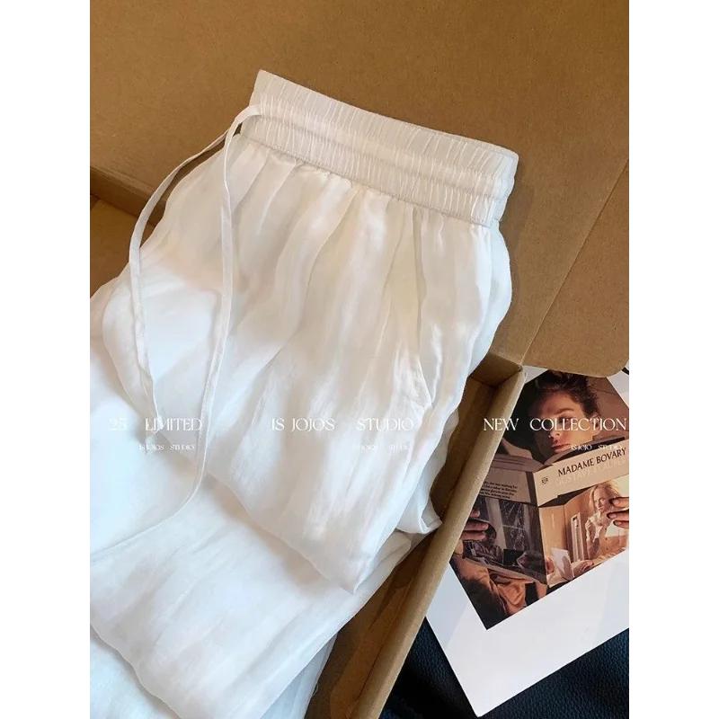 Autumn Thin Lazy Drape Slimming Relaxed Casual Wide Leg Pants Pink New Chinese Style Embroidery Spliced Ramie Women's