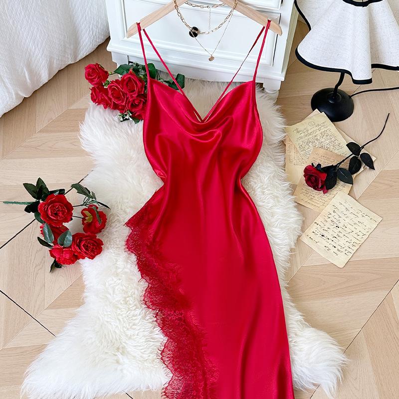 Fashionable and Sexy Nightgown, Backless, Form-fitting Ladies' Home Wear, Halter Dress, Lace Trim Nightgown