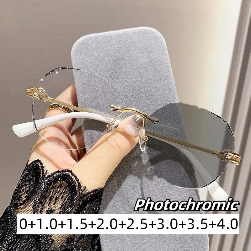 Luxury Intelligent Color Changing Presbyopia Glasses Round Oversized Far Sight Eyewear Photochromic Optical Sunglasses 0 To +4.0