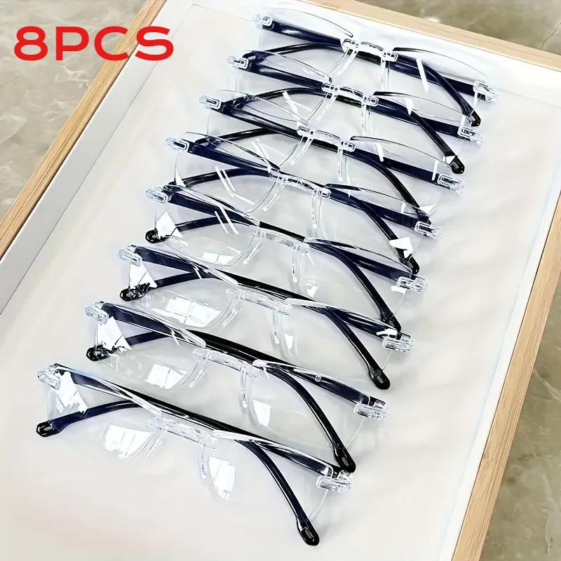 8Pcs High-Definition Blue Light Blocking Reading Glasses - Rimless Anti-Eyestrain Glare Protection +1.0 To +4.0