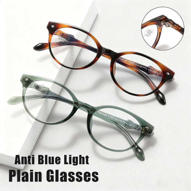 Women'S Ins Style Retro Small Frame Oval Plain Glasses Premium-Quality Versatile Blue Light Blocking Eyewear Men Goggles