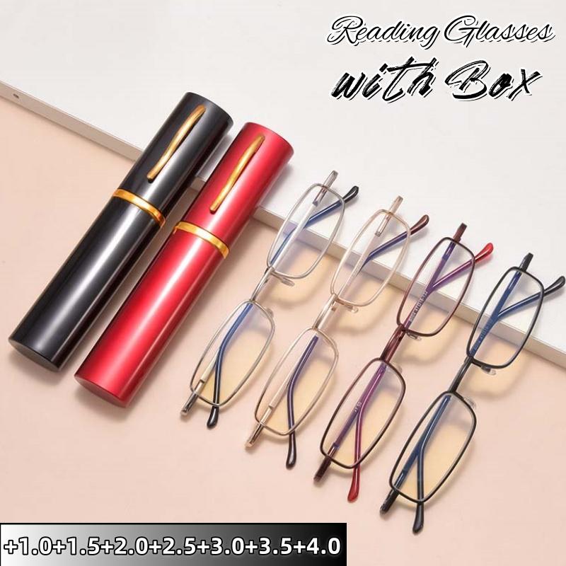 Fashionable Ultra Light Mini Presbyopia Glasses With Box Portable Personalized Men Women Anti-Blue Light Eyeglasses +1.0 To +4.0